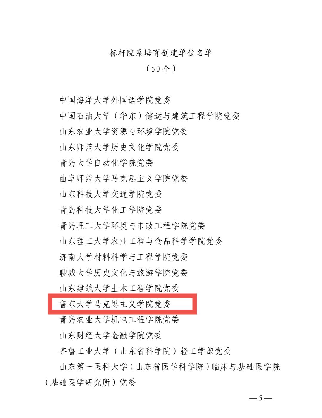 近日,中共山东省委教育工委公示了山东省第三批新时代高校党建工作示范高校、标杆院系、样板支部及第二批高校“双带头人”教师党支部书记工作室培育创建单位,我院党委入选标杆院系培育创建单位。