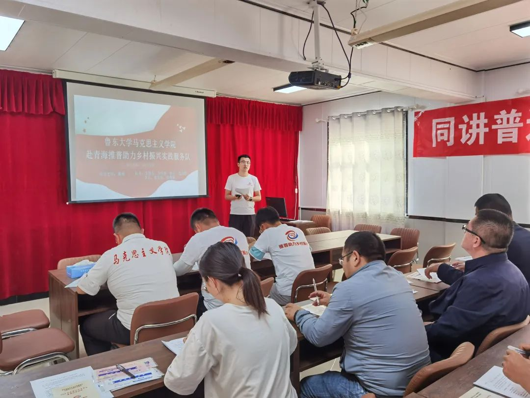 在道阳村,张道坦和李同睿同学重点从少数民族地区农牧民对于国家通用语言文字普及和掌握程度出发,团队在现场为村民们发放了“推普助力乡村振兴”宣传手册和专用口罩、并与村民们开展了交流互动,详细了解了近年来推进国家通用语言文字活动对村民们的切身感受。在与村第一书记沟通后得知,村民们想了解青海省第十四次党代会精神的实际情况后,团队又结合青海省第十四次党代会精神,用普通话进行了宣讲。在活动最后,跟村民们做了“推普助力乡村振兴”调研问卷,为更好地解决少数民族地区农牧民发展提供数据支持。(撰稿:李恩春 审核:靖波)
