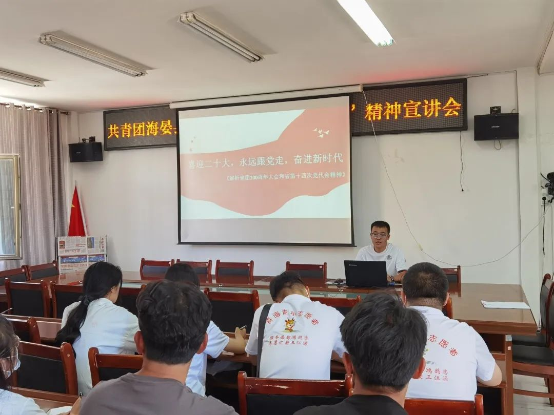 这两次宣讲活动中,团队以“喜迎二十大 永远跟党走 奋进新征程”为主题,紧紧围绕习近平总书记在庆祝中国共产主义青年团成立100周年大会上的重要讲话精神和青海省第十四次党代会精神,希望大家以高度的政治自觉把习近平总书记在庆祝建团百年大会上的讲话精神和省第十四次党代会提出的新要求、新部署、新期望切实落实到今后的学习工作中,体现在工作岗位上,把学习成果转化为干事创业的强大动力。