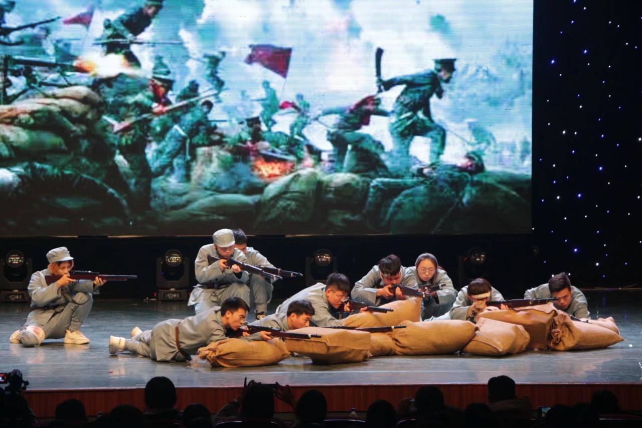 决赛作品主题鲜明、立意深刻、情节动人,选手们满怀深情、生动演绎,在一幕幕情景剧中,表达出他们强烈的爱国主义情感。其中,由视传本1901、1902班同学表演的《建军岁月》展现出中国共产党和中国人民不畏强敌、前仆后继的革命精神;汉语本1902班同学带来的《西安事变》则将张学良、杨虎城两位将军担当民族大义、共纾国难的形象表现得淋漓尽致……选手们精彩的表演赢得了在场评委和观众的阵阵掌声,为大家带来了一场身临其境的视觉盛宴。