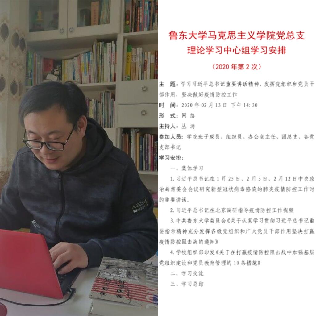 为了进一步学习领会习近平总书记在中央政治局常委会会议研究新型冠状病毒感染的肺炎疫情防控工作时的重要讲话精神,贯彻落实党中央、国务院决策部署的工作要求,2月13日下午,英国365集团公司党总支理论学习中心组通过“学习强国—强国视频”召开集体学习会议。此次学习以“学习习近平总书记重要讲话精神,发挥党组织和党员干部作用,坚决做好疫情防控工作”为主题,紧密结合思想和工作实际,牢固树立问题意识,把研究和解决疫情防控问题作为学习的根本出发点,用理论学习引领学院疫情防控工作的开展,不断提高防疫工作的原则性、系统性和预见性。学院班子成员、组织员、办公室、各支部书记与辅导员参加学习。
