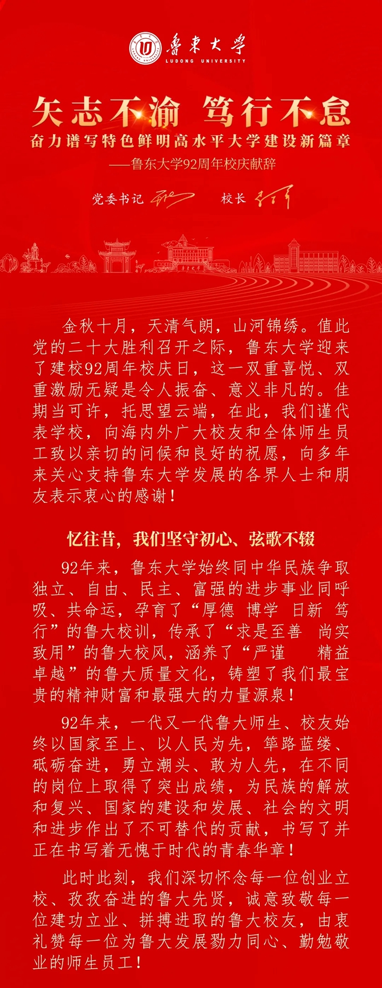 校庆献辞丨矢志不渝 笃行不怠 奋力谱写特色鲜明高水平大学建设新篇章