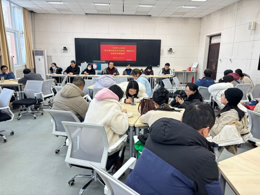 党委书记邢亮指出,2024年是学院发展的关键年。要对标对表学校博士单位攻坚目标、学院领导班子任期目标、学校重大关键绩效发展目标,科学谋划、有序推进学院的改革发展任务。2024年要紧紧围绕年度目标任务,坚持“一融双高”工作理念,深入探索党建与业务深度融合,以高质量党建引领学院高质量发展;坚持“围绕中心抓党建、抓好党建促业务、党建水平看发展”的工作思路,以“严真细实快”的工作作风全面抓实抓好各项工作;坚持“以点带面”的工作方法,围绕教育部“双带头人”教师党支部书记工作室建设与验收、省重点马院建设、省党建工作标杆院系规划与建设、铸牢中华民族共同体意识研究基地规划与建设、师范专业建设与认证、弘扬“广秀精神”打造特色品牌等工作重点,全面推动学院工作高质量发展。他强调,一要加强政治学习,提高政治意识和政治站位。全体教师要深入落实习近平总书记对思政课教师“六个要”的标准要求和教育部《新时代高校思想政治理论课教师职业行为规范和准则》,作“人师”和“经师”相统一的“大先生”,真正把思政课打造成高校落实立德树人根本任务的“关键课程”。认真完成教师研修课程的学习任务,上好开学第一课。二要抓好主责主业,践行“严谨、精益、卓越”的鲁大质量文化。坚持有组织的教学、科研,推进科研强院、质量兴院,推动教学、科研工作创新发展、突破发展。三要主动作为,善做善成。每个人身上蕴含着干事创业的无限潜能,要激发教师积极主动搞好教学科研的内生动力,为教书育人、科研育人、管理育人、服务育人提供科学有效的激励政策和敬业乐业的良好环境。四要树立安全意识,为事业发展保驾护航。把意识形态安全、全方位安全贯穿于教书育人、事业发展全过程,加强安全知识教育,增强安全防范能力,压实安全责任落实,日常安全检查到位。