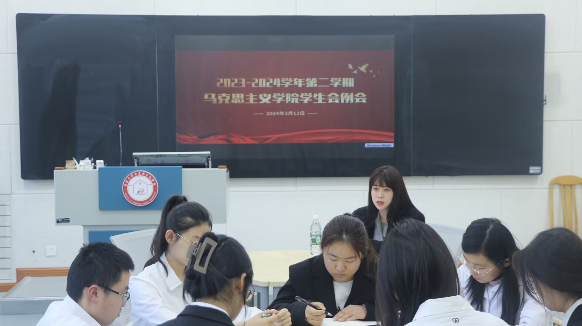 本科学生会例会上,团总支书记戴杨首先对各部门的长期工作给予肯定,并从日常工作、成员沟通、工作技能等方面对本科学生会成员提出新的要求。会议最后,戴杨对新学期的工作进行部署,希望本科学生会成员发挥好带头作用,多配合、多沟通,全心全意为同学服务。