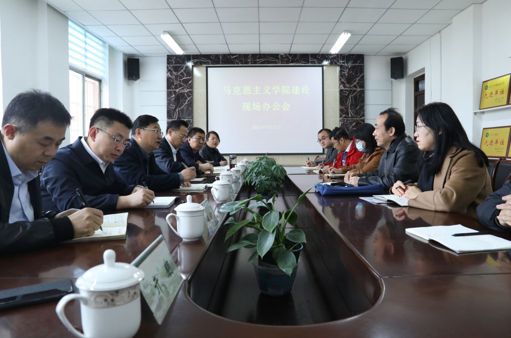 李合亮一行聆听了《马克思主义哲学专题研究》的课堂授课。走访调研了教授工作室、党建室、教研室、阅览室、藏书室和学生自习室等,了解教学科研保障条件,听取师生意见建议。现场办公会上,李合亮听取了学院师生代表关于科研、教学、招生、高质量人才培养、思政课教师队伍建设、学风建设和学生实习、就业等方面的问题和意见建议,并进行了现场办公。各相关职能部门认领了任务并对学院的建设发展提出了针对性的指导意见。