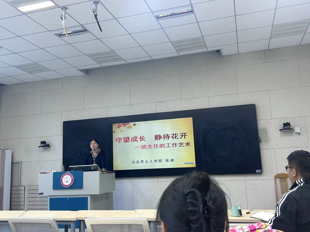 近日,我院邀请张清副教授针对专业硕士研究生开设《班主任的工作艺术》的专题讲座,本次讲座由院长助理刘震主持。