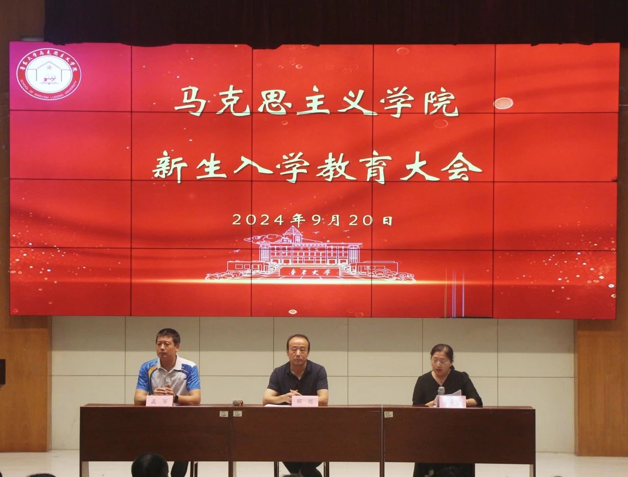 党委书记邢亮在新生入学教育大会中向2024级新同学表示热烈欢迎,结合烟台的地理位置和历史特点从学院的长度、宽度、厚度、温度等方面详细介绍了学院师资力量、学科建设、教学特色、人才培养等方面的基本情况。围绕大学的学习和生活,他向新生提出四点建议:一是来到马院要自觉做政治上的明白人老实人。真学真做,提升学术素养,充分发挥主观能动性,不仅要学好专业课,更要打牢基本功,回归到马恩经典著作的阅读之中,并在其中发现个人兴趣;二是成为合格的马克思主义学习者和践行者。政治要强,情怀要深,思维要广,做到在马言马、在马行马、在马用马、在马爱马;三是勇做引领时代潮流的追梦者和奋斗者。谨记革命先辈的故事,杜绝“躺平”的思想,积极向上,求真务实,努力成长为有理想、敢担当、能吃苦、肯奋斗的新时代好青年。四是养成锻炼身体和学习思考的好习惯。积极参与各类活动,丰富校园生活,养成健康的生活方式。在以中国式现代化全面推进强国建设、民族复兴伟业的关键时期,希望同学们不负韶华,奋发有为,在马院的学习征途上无愧于国家,无愧于时代,无愧于青春,书写属于自己的新篇章。