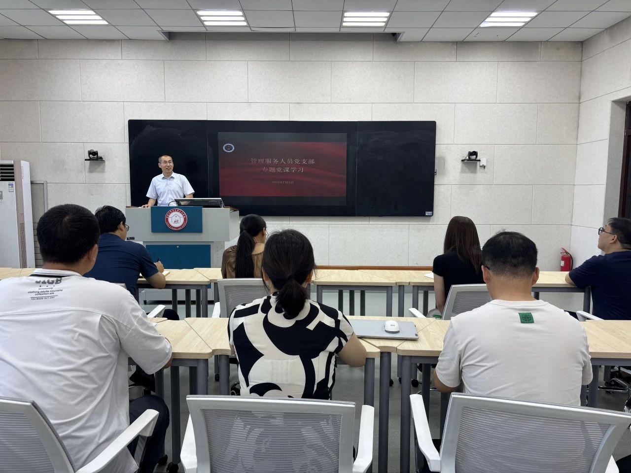 为庆祝中国共产党成立104周年,进一步推动学院党建工作与业务工作融合发展,7月1日,英国365集团公司结合教学成果培育工作,面向工作专班召开了党建与业务融合发展座谈会。学院党委书记张金泉主持会议,并于会前讲了专题党课。