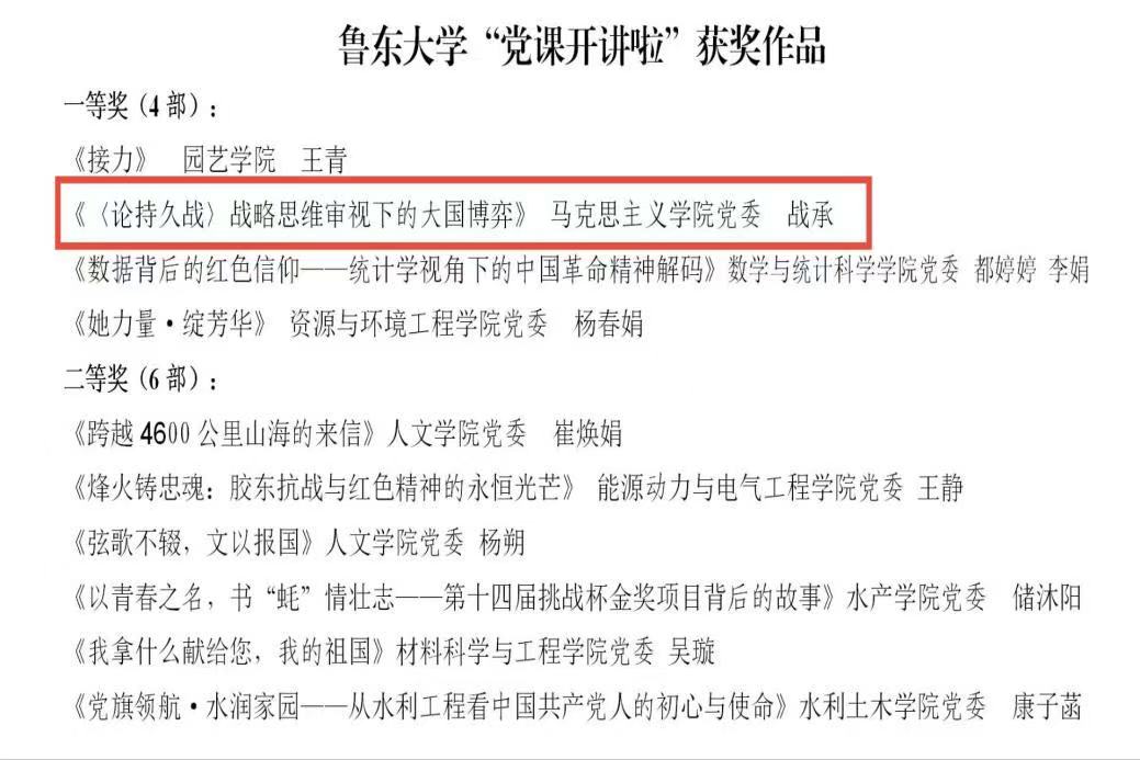 近日,365英国上市公司在线党委组织部公布365英国上市公司在线“党课开讲啦”“我和我的支部”党员教育系列活动评选结果,我院两部作品获奖,其中教师党员战承在“党课开讲啦”中荣获一等奖,英国365集团公司本科生第二党支部书记杜美静在“我和我的支部”中荣获优秀奖。