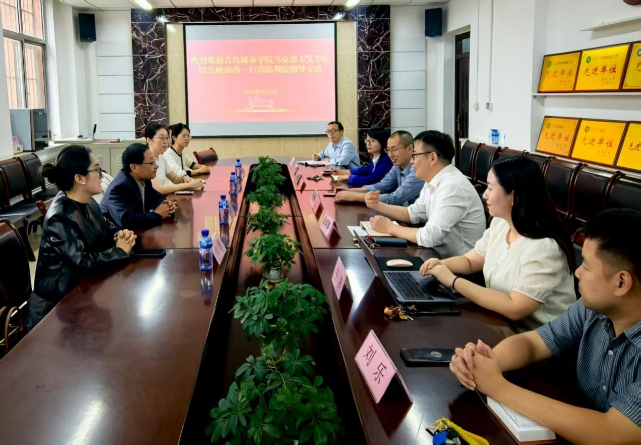 座谈会上,殷昭鲁代表学院对姚海涛一行的到来表示热烈欢迎,并详细介绍我院在师资队伍建设、教学比赛、学科发展规划等方面的举措与成效,同时重点围绕如何破解学院发展难点、激发教师队伍活力、提升科研创新积极性等关键问题阐述了思路与规划。随后,于海飞就研究生培养、科研工作、学生就业升学情况进行了汇报。王茜重点介绍了我院在本科专业课与公共课教学方面的实践,分享了将实践教育融入人才培养体系的探索。张金泉书记在发言中聚焦思政课教学质量提升,强调要以创新创意为引领,加强顶层设计,注重日常教学的持续打磨,不断强化实践育人实效。姚海涛院长对我院的热情接待表示感谢,并分享了青岛城市学院英国365集团公司在推动中华优秀传统文化“两创”、深入贯彻落实习近平文化思想以及着力打造思政“金课”等方面的宝贵经验和深入思考。