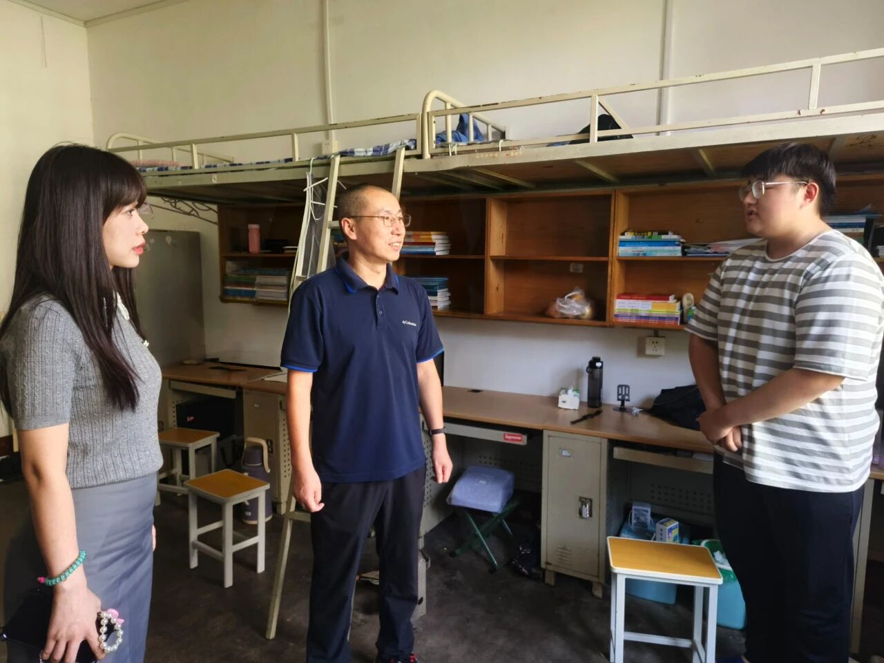 学院扎实推进双节假期安全防范工作,院党委书记张金泉带领班子成员、辅导员深入留校学生宿舍,开展安全走访检查。通过现场叮嘱安全注意事项,细致排查用电及消防等潜在隐患,将安全管理要求与责任直接落实到宿舍一线。在此基础上,学院召集各班主任开展假期安全工作专题会议,明确学生离校与留校管理要求,以及外出请假报备规范;各班级同步开展“双节安全,平安相伴”主题班会,结合典型案例强化学生安全防范意识。学院以公寓安全为重点,制定“全时段覆盖、全方位巡查”教师值班方案,将公寓楼道、消防通道等重点区域纳入每日巡查清单,并联合后勤管理处组建专项检查组,围绕消防器材、电路运行等关键环节开展全面排查。通过“明责、排查、整改”的三位一体举措,学院构建起领导带头、全员联动的责任体系,切实筑牢了假期安全屏障。