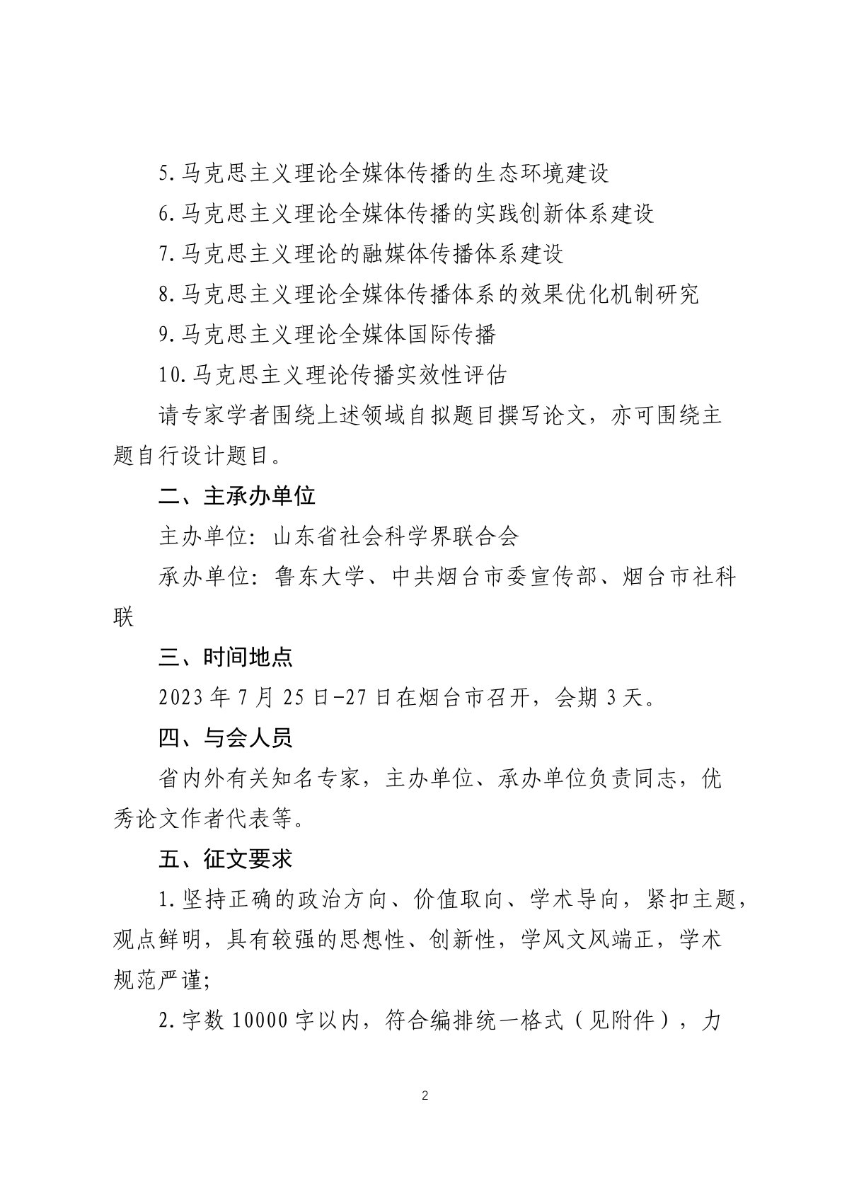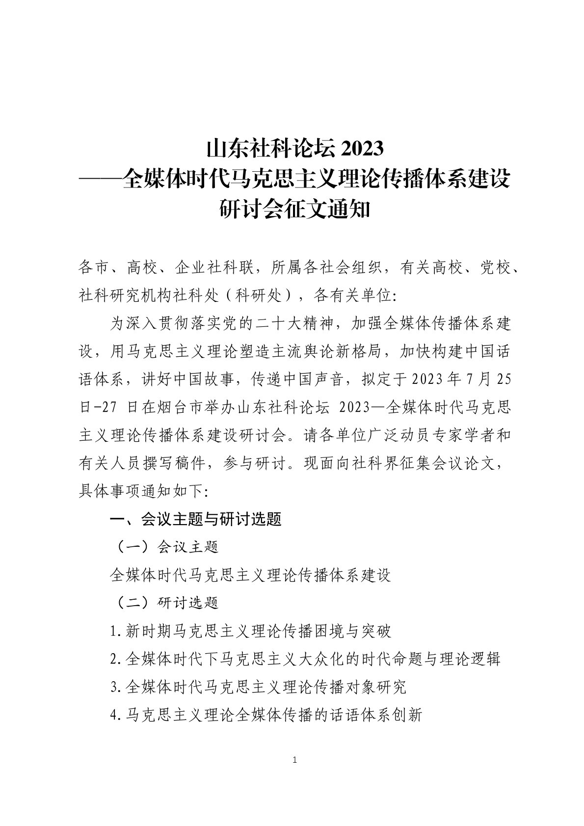 山东社科论坛 2023 ——全媒体时代马克思主义理论传播体系建设研讨会征文通知