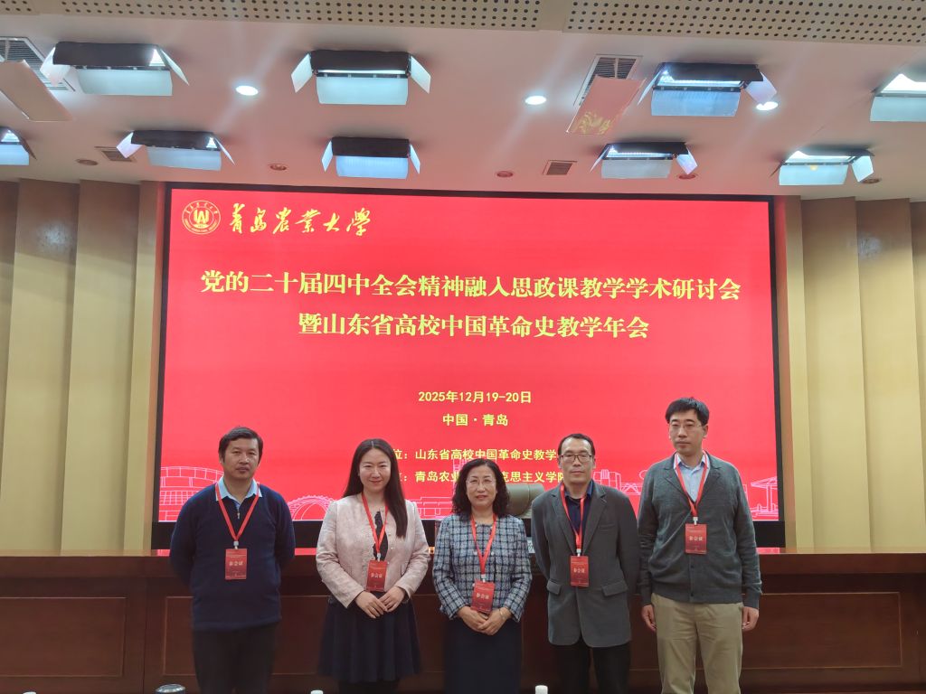 近日,由山东省高校中国革命史教学研究会主办、青岛农业大学英国365集团公司承办的“党的二十届四中全会精神融入思政课教学学术研讨会暨山东省高校中国革命史教学年会”在青岛农业大学学术会馆顺利举行,省内外40多所高校的英国365集团公司负责人、专家学者及教师代表160多人参加了会议。我院王茜、杨贵颖、许以民、宋开友和于宁五位教师参加会议。