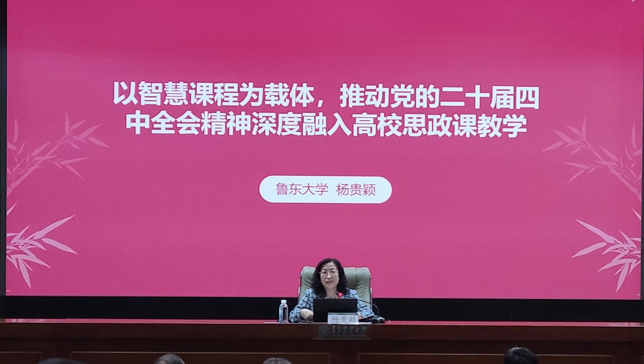 在主旨发言环节,10余名专家围绕思政课的本质、智能时代教学模式改革、红色资源融入思政课堂、农业院校特色育人等议题展开了深入而富有建设性的分享与交流。我院杨贵颖副教授以《以智慧课程为载体,推动党的二十届四中全会精神深度融入思政课教学》为议题,进行了交流发言。