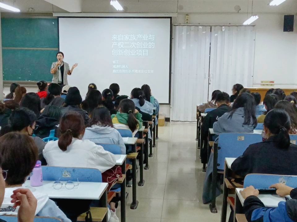 元晨瑜介绍了各类大学生创新创业大赛,如全国“互联网+”大学生创新创业大赛、“挑战杯”全国大学生课外学科技术作品竞赛、中国大学生服务外包创新创业大赛等,分享了准备比赛、展示竞争到结束总结的全过程。蒋愉晴表示,今天对“双创”有了更深一步的认识,懂得了团队协作能力和语言沟通技巧的重要性。意识到到参加创新创业比赛不仅是为了获得各种荣誉,更重要的是激发自身创新思维,锻炼自身创新能力,提高自身综合素质。杜雨佳表示,本次创新创业大赛讲座不仅拓宽了同学们在创新创业方面的知识,而且也激发了同学们的创新创业热情,提高了同学们的创新创业意识,营造了浓厚的创新创业氛围。