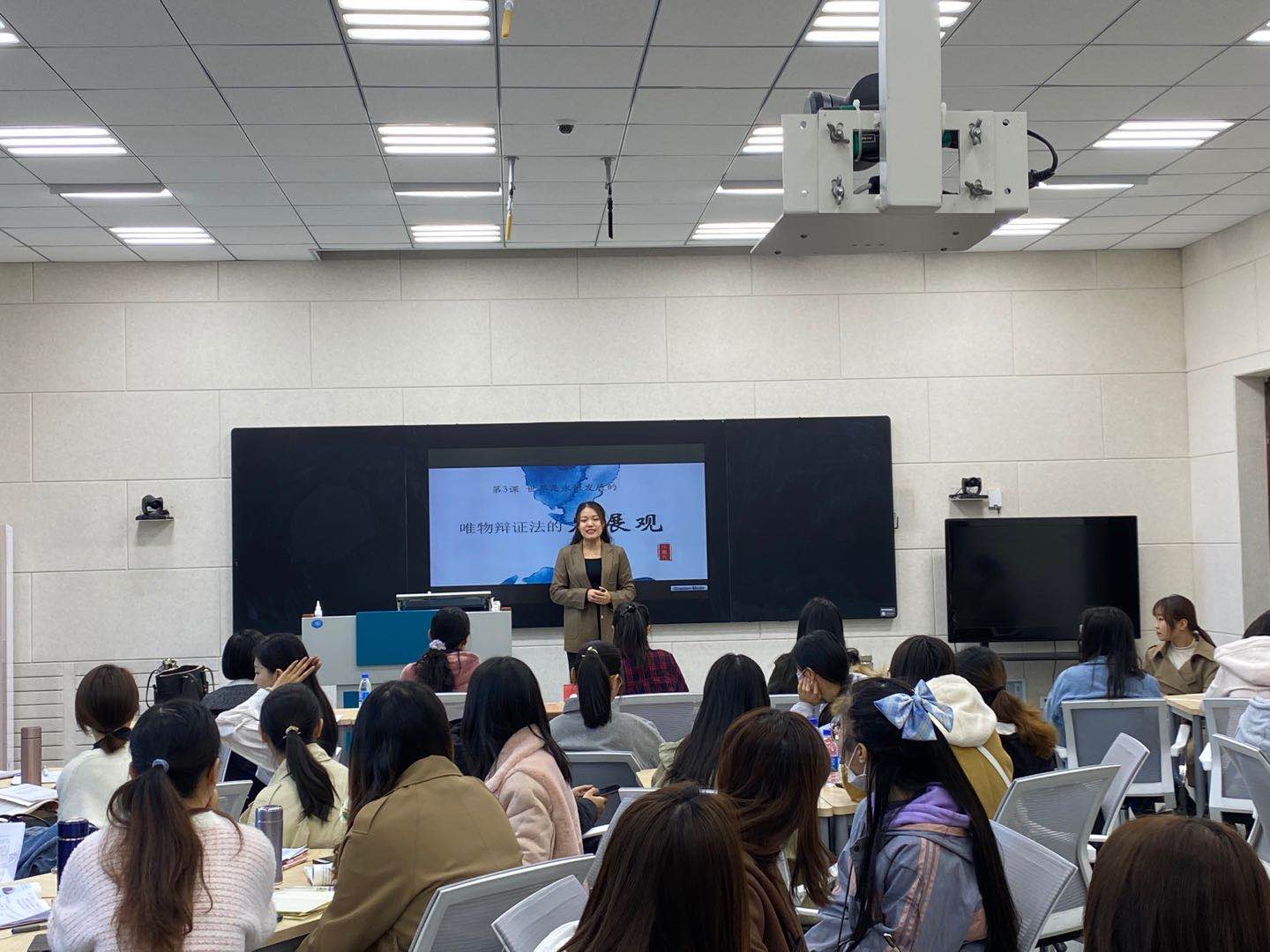 全院19名研究生就“用发展的眼光看问题”为题进行教学技能展示。各参赛选手准备充分,教学设计合理,语言表达准确,以端庄大方的仪态彰显出扎实的教学基本功。评委从教学口语、内容设计、教态、板书等方面对选手进行考核,强调教育教学要明确目标与重点,发挥学生主体作用,时刻重视学科核心素养在教学中的应用。
