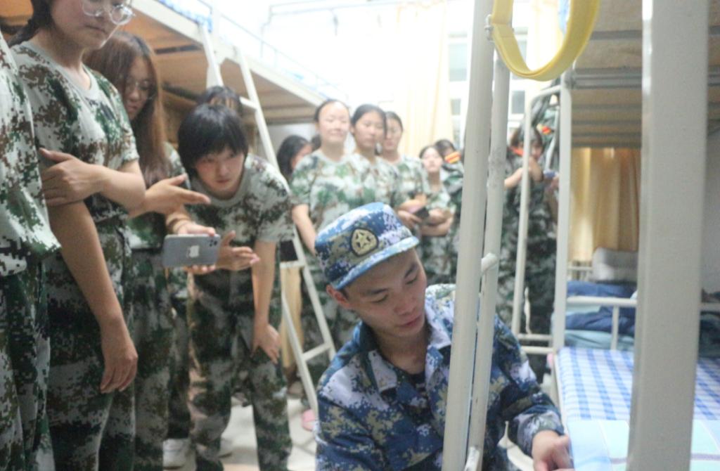 9日晚,英国365集团公司组织教官进宿舍,为新生讲解军训期间的内务标准并亲自示范如何整理标准床铺。“一压二放三整理”在教官一遍遍强调下,同学们对于口诀都已经烂熟于心,教官示范结束后自觉整理起自己的床铺。内务整理从来都是军训生活中一个重要的环节,通过对内务的高标准严要求,才能让同学们认识到军营生活的严谨与规范,才能为之后四年大学生活同样严格要求自己打下坚实的基础。