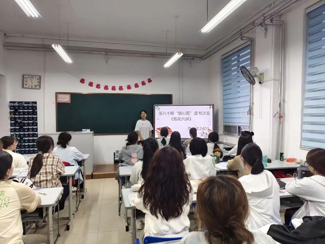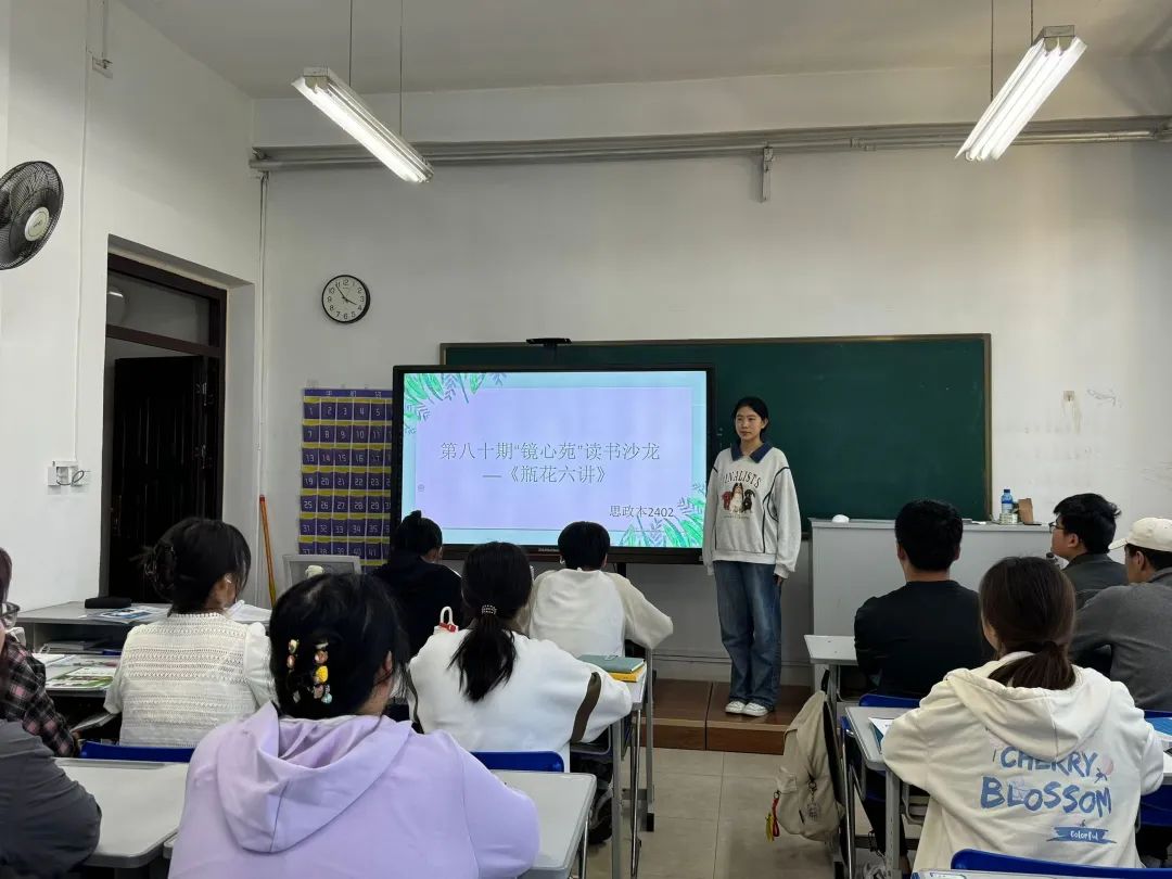 本次沙龙活动选取的书目为中国传统插花研究学家徐文治的著作《瓶花六讲》,该书以瓶花艺术为切入点,深度剖析了中国传统艺术的独特魅力与深厚内涵。主讲人借助PPT生动讲述了瓶花艺术的历史渊源与艺术价值,带领同学们体悟瓶花艺术的博大精深并邀请同学们进行瓶花制作。2401班季桐宇表示:“《瓶花六讲》此书使我扩展了传统艺术与现代社会融合的思路。”