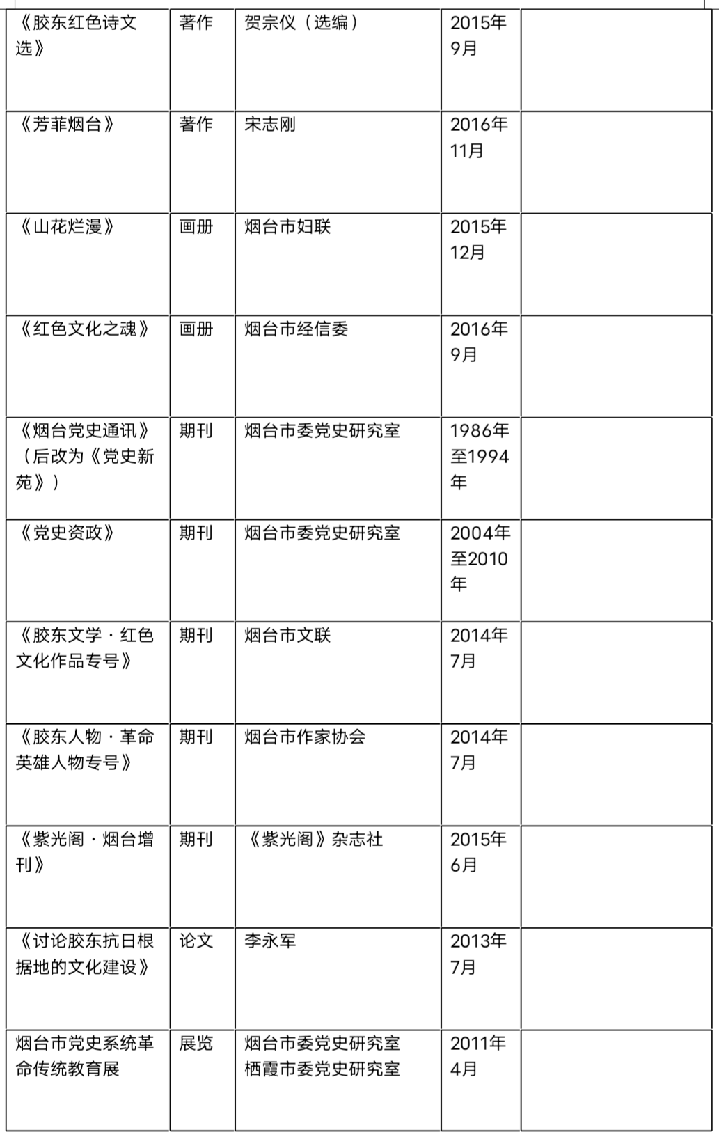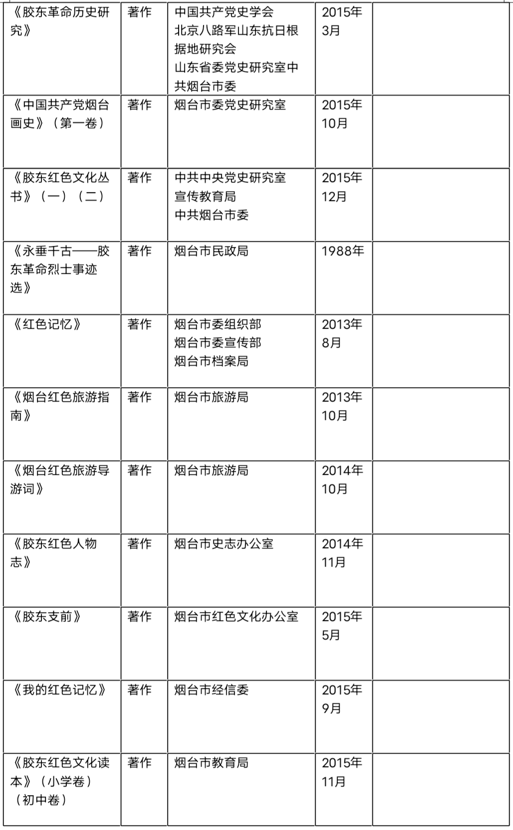 胶东红色文化成果名录