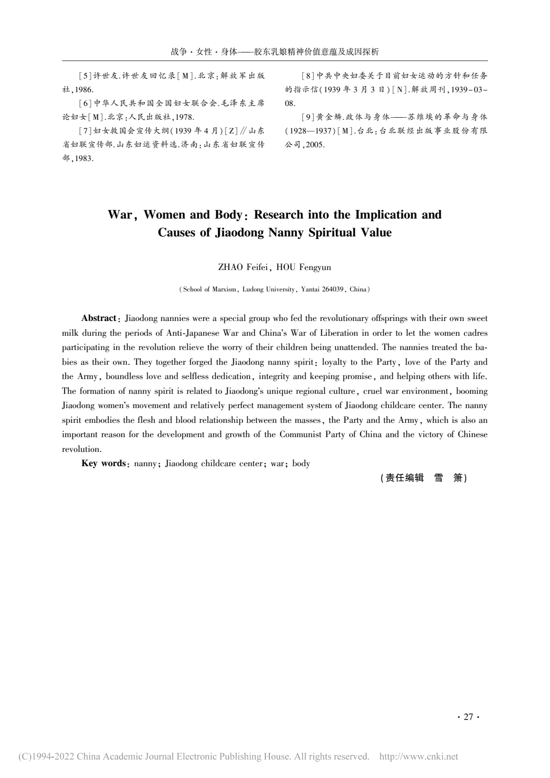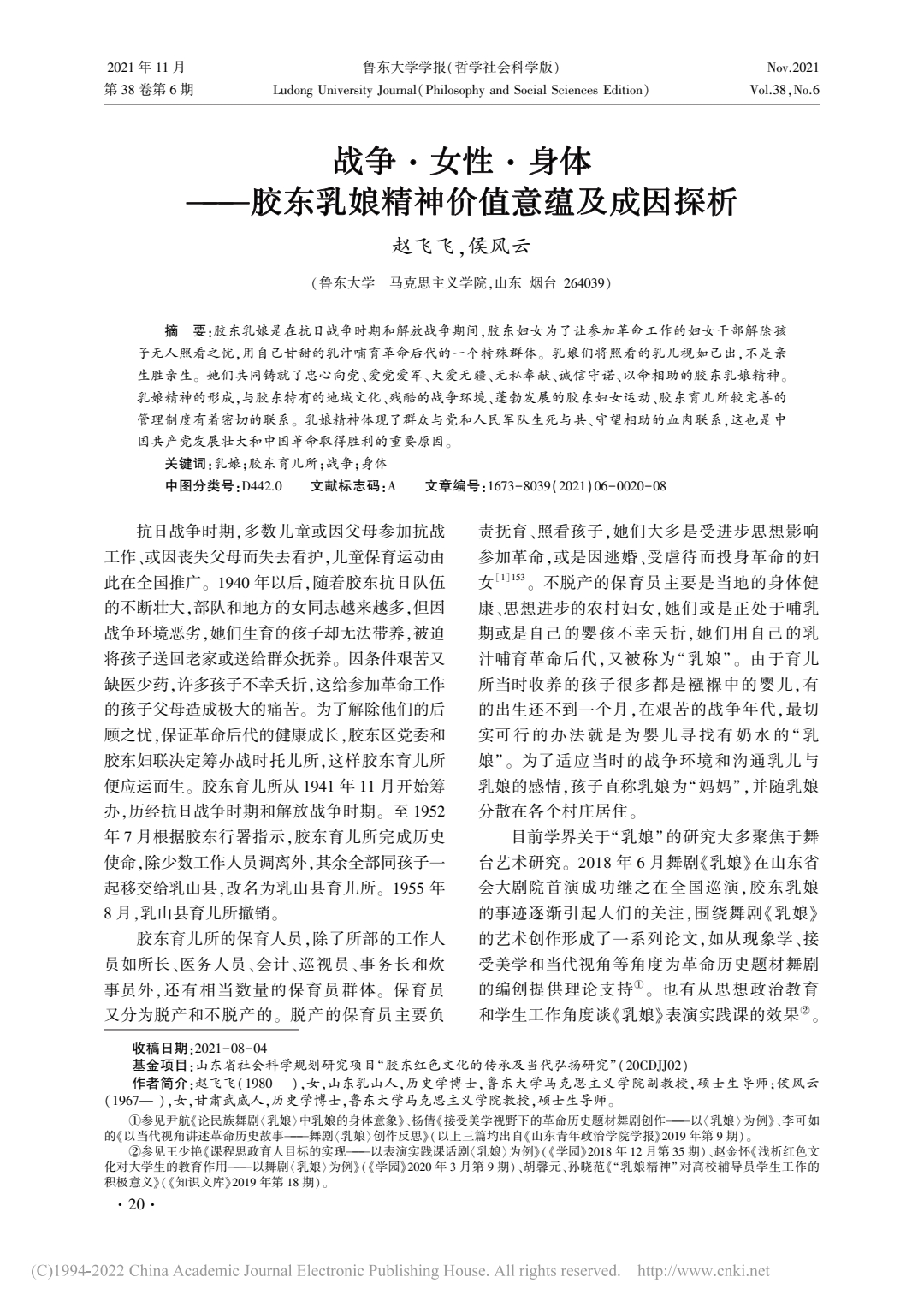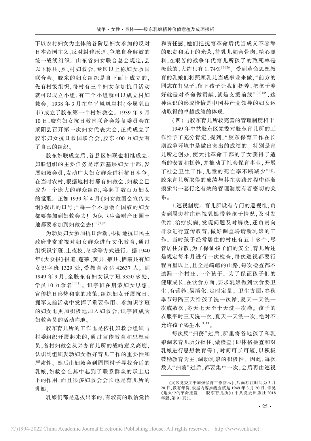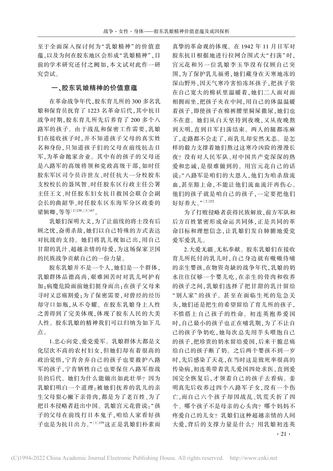 战争·女性·身体——胶东乳娘精神价值意蕴及成因探析