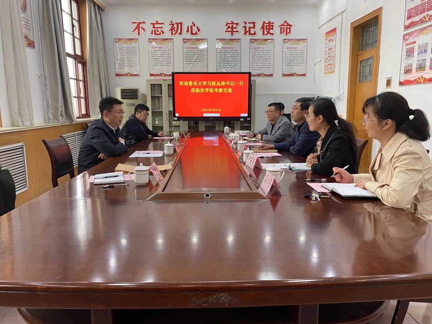 我校一行参观了山东农业大学农学院“双带头人”教师党支部书记工作室、党建长廊、党员会议室,观看了农学院党建工作宣传片,并与农学院党委有关同志就党史学习教育、党建工作规范化标准化、党建融入中心工作和“双带头人”党支部工作室建设等方面的内容进行了座谈交流。