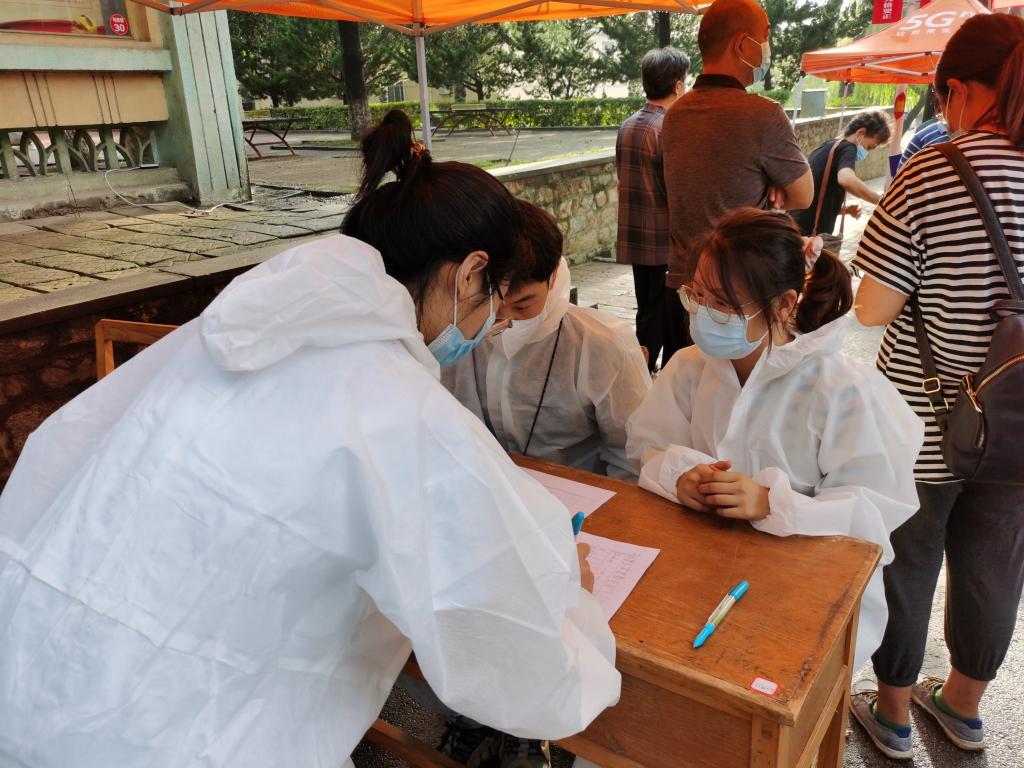 8月3日晚,我校启动第一轮全员核酸检测工作。学院党委书记直接坐镇指挥调度学院师生核酸检测工作。院长亲自报名参加核酸检测志愿者队伍。学院党委副书记靖波同志,率先示范,主动担当,战斗在学生核酸检测一线至凌晨,保障了学生检测工作顺利完成,充分展示了党员干部担当作为的榜样力量。学院党委组织员赵梅婷同志、辅导员蔡天元同志,响应组织号召,作为志愿者主动参与到核酸检测工作中,协调引导检测人员有序检测,帮助退休高龄教职工扫码登记,为全员核酸检测工作发光发热。学院马学宁等13名学生党员和入党积极分子组成志愿者团队,积极投身于核酸检测工作,协调引导检测人员扫码登记、维持秩序、协助医护检测人员工作,发挥党员先锋模范作用。