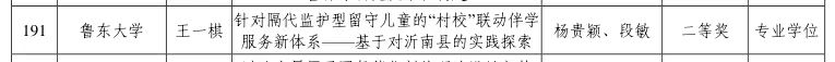 近日,山东省教育厅公布《山东省教育厅关于开展2022年导师和教育教学资源项目申报工作的通知》,我院2021级学科教学(思政)专业硕士研究生王一棋申报的“针对隔代监护型留守儿童的‘村校’联动伴学服务新体系——基于对沂南县的实践探索”喜获山东省研究生创新成果奖二等奖。