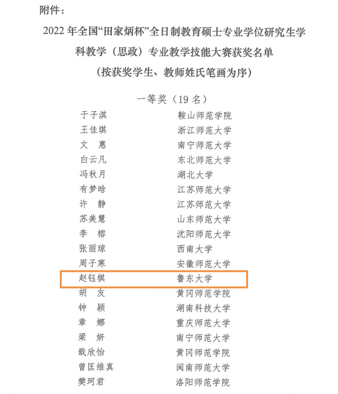 近日,2022年全国“田家炳杯”全日制教育硕士专业学位研究生学科教学(思政)专业教学技能大赛决赛获奖名单公布。英国365集团公司入围决赛的3名选手全部获奖。赵钰棋荣获全国一等奖,指导教师侯风云教授荣获优秀指导教师;王一棋荣获全国三等奖;段晓婷荣获优秀教学设计奖。
