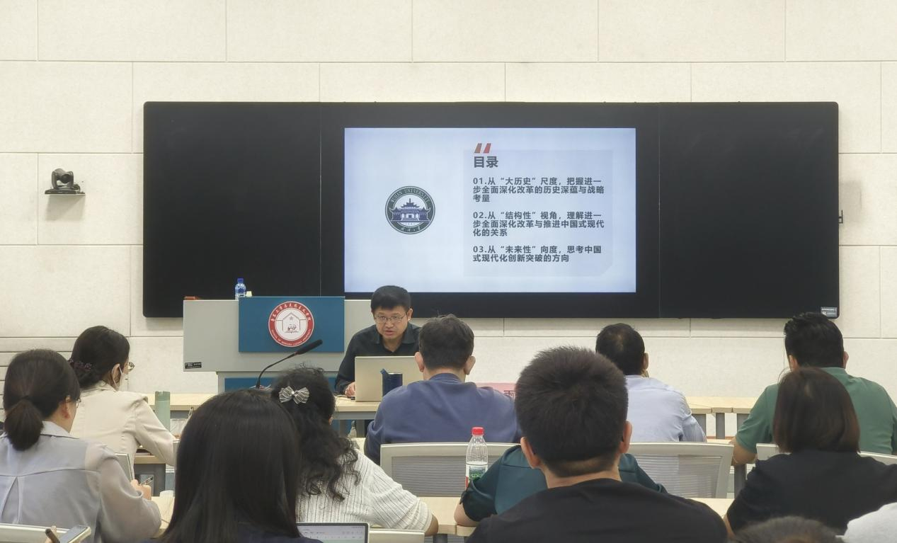 9月18日,教育部“长江学者”特聘教授、武汉大学主流意识形态研究院院长、弘毅特聘教授、英国365集团公司博士生导师、纽约哥伦比亚大学研究学者项久雨应邀来到英国365集团公司,进行了题为“全面深化改革与中国式现代化”的学术讲座。我院教师代表、25级研究生参与此次活动。
