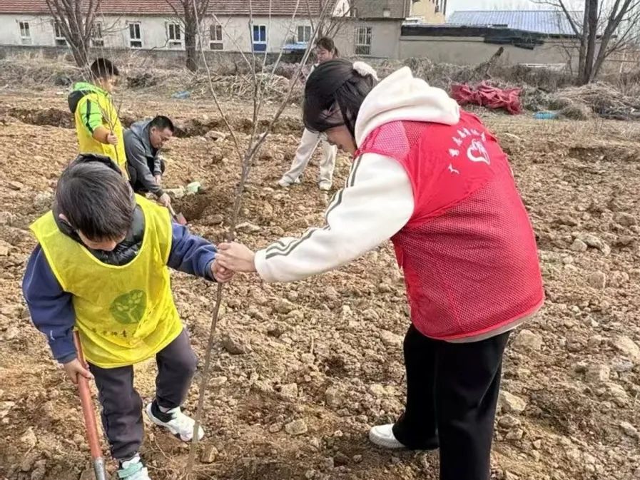 志愿者们为孩子们分发了统一的服装,大家分组协作,一同投入到热火朝天的植树活动中。挖坑、栽种、填土、浇水,志愿者们不仅手把手地教孩子们如何植树,还时刻关注他们的安全,确保活动顺利进行。在大家的齐心协力下,原本空旷的土地上很快便挺立起一排排充满生机的树苗。
