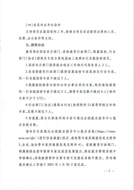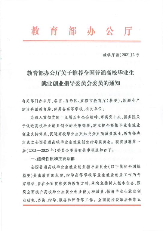 教育部办公厅关于推荐全国普通高校毕业生就业创业指导委员会委员的通知