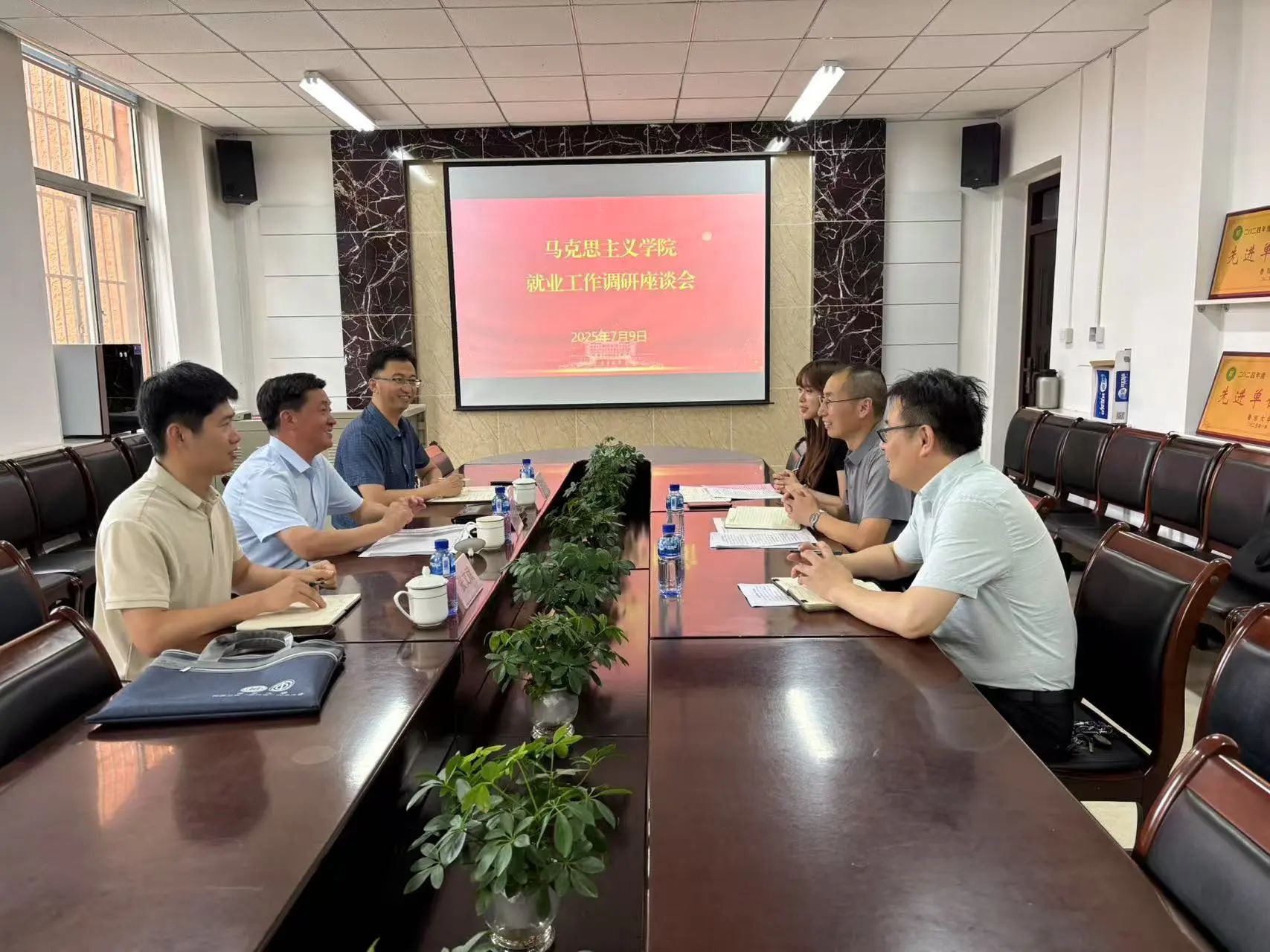 7月9日,校党委常委、副校长毕研强莅临我院调研指导就业工作,学生工作处副处长李绍龙、就业指导中心副主任张文斌陪同调研,学院党委书记张金泉、副院长(主持行政工作)兼副书记殷昭鲁及就业工作具体负责人参加会议。